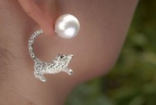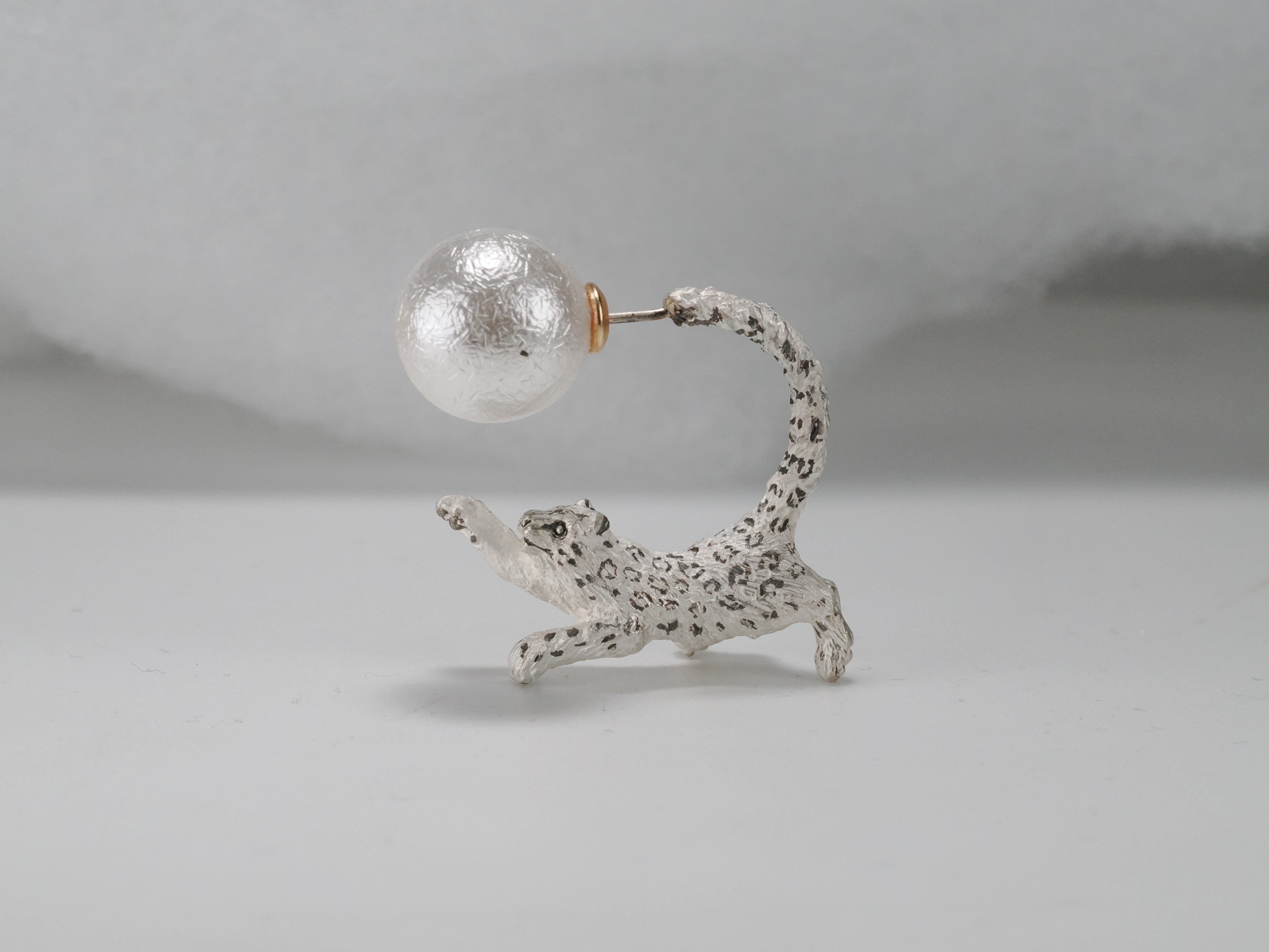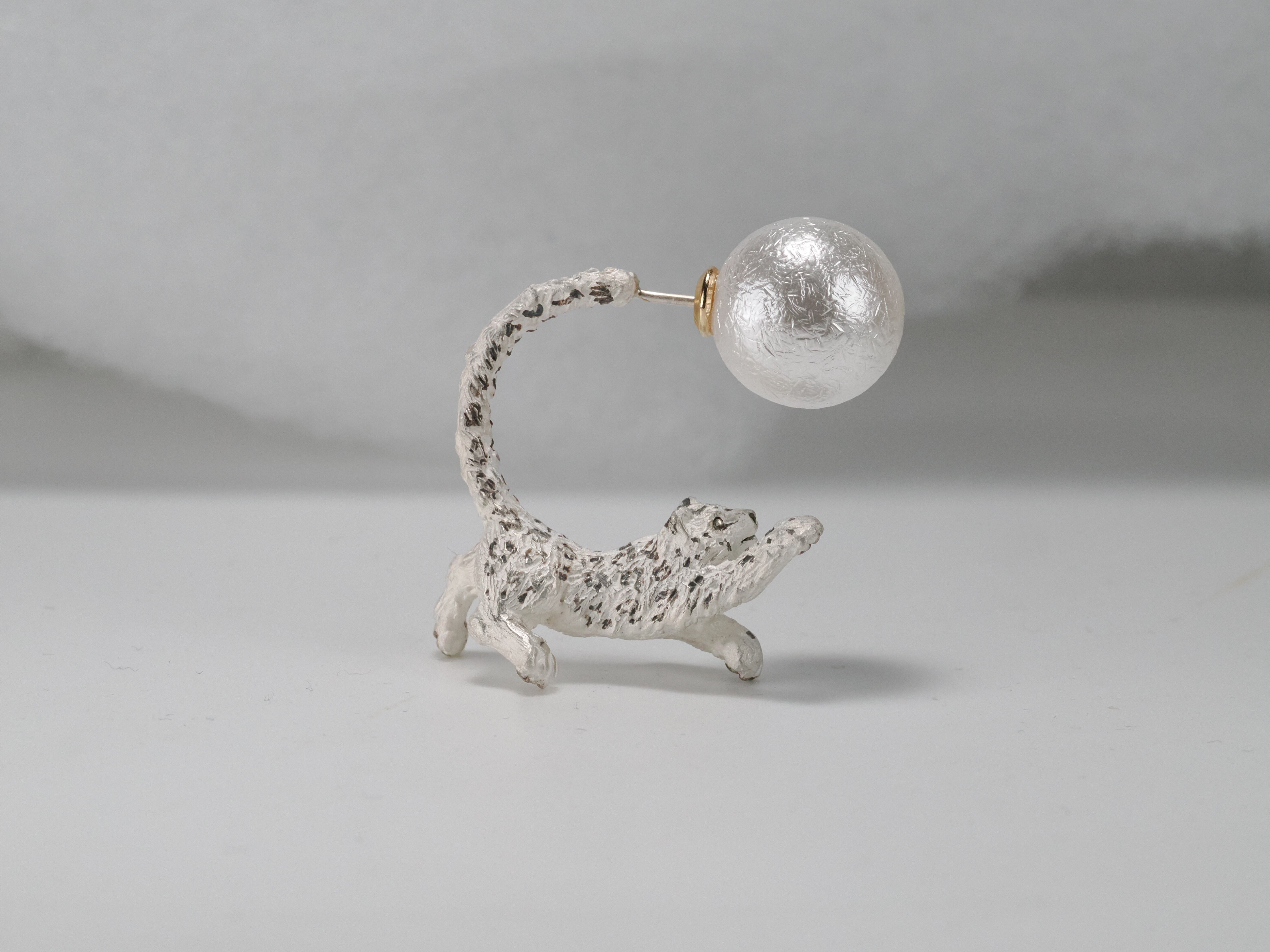 ユキヒョウが耳元を駆け回るピアス。片耳販売です。