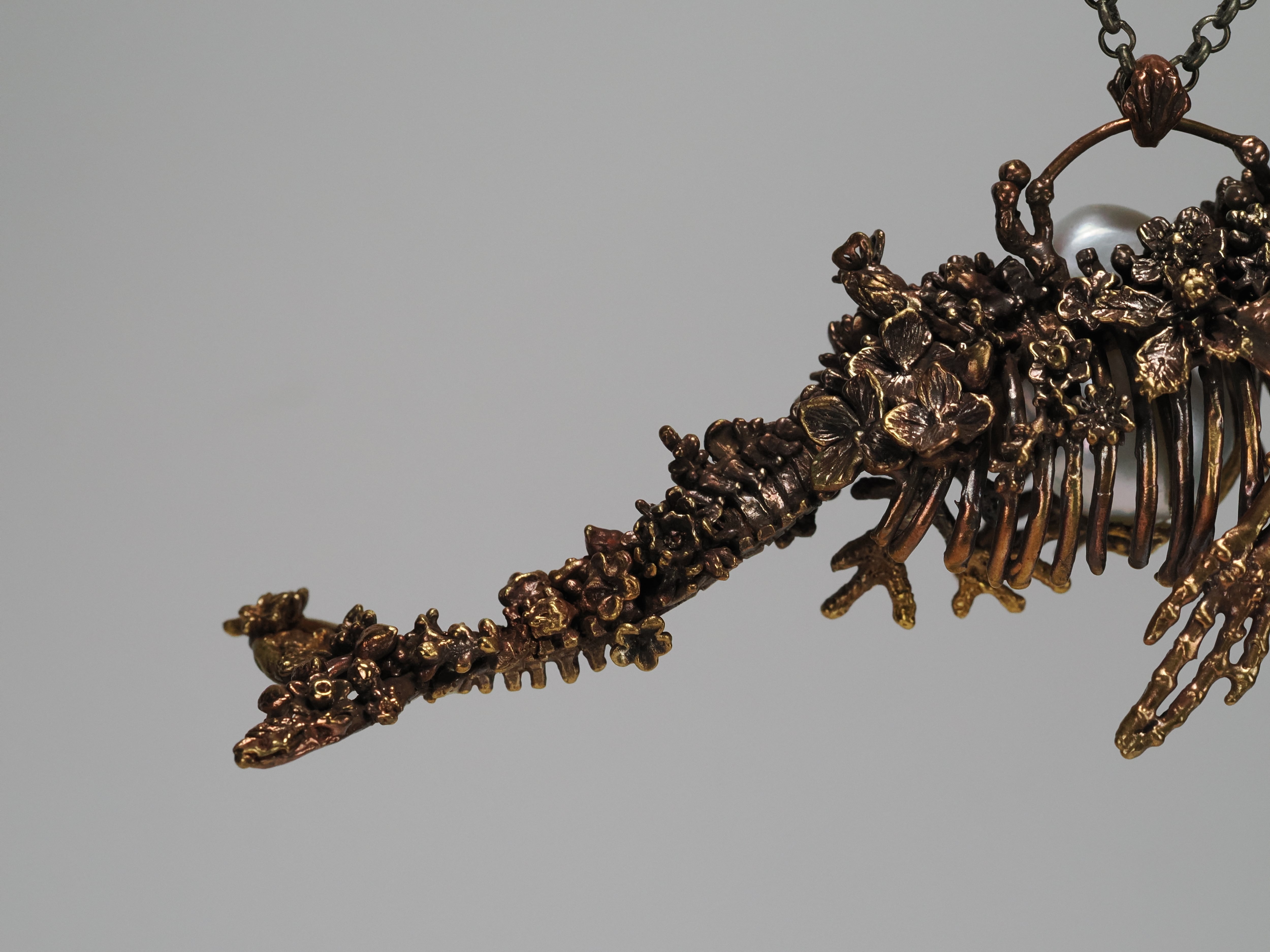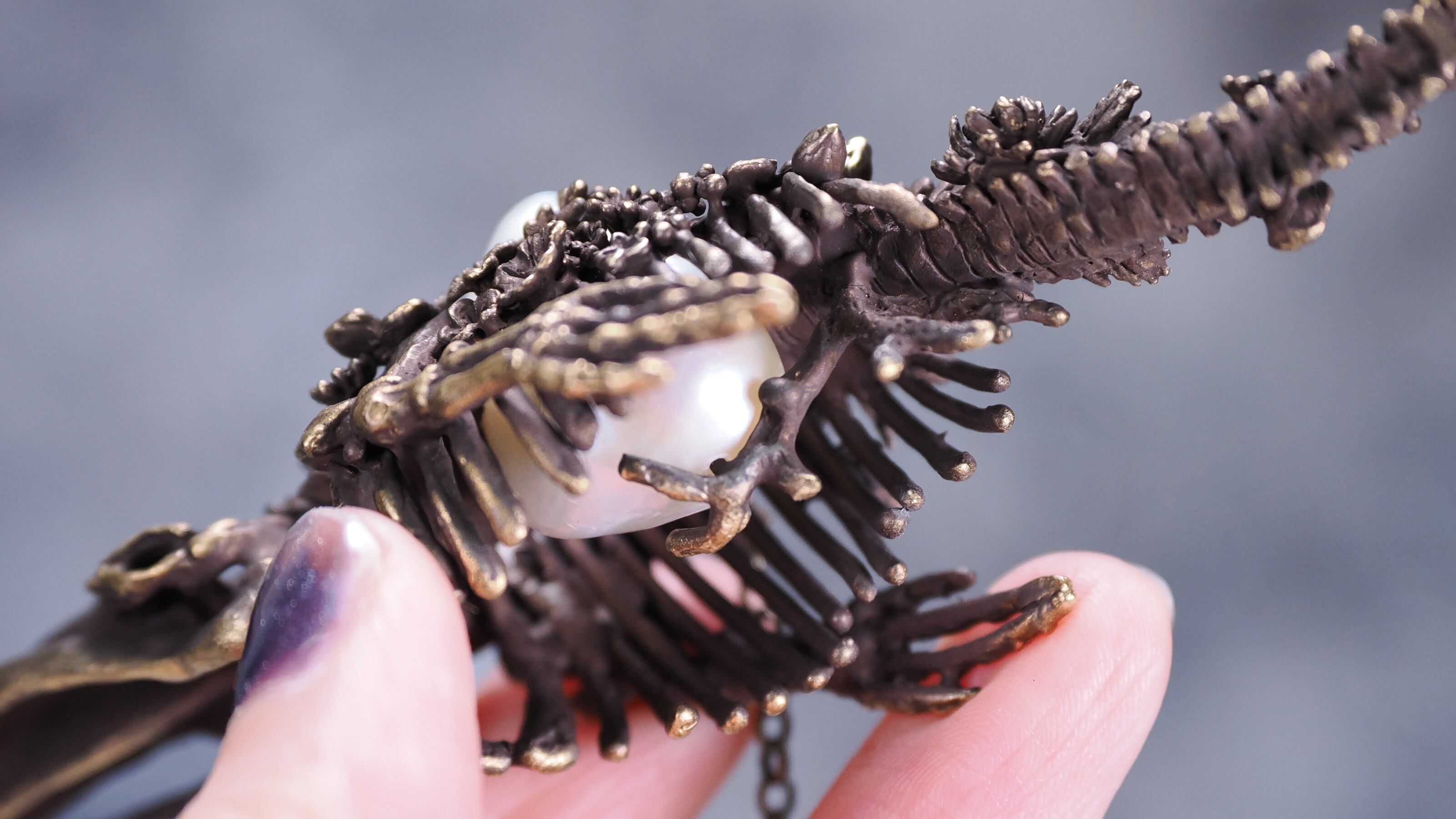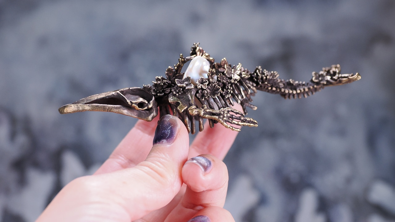 となり、骨になった鯨の心臓にパールが揺らめいているようなイメージで作りました。