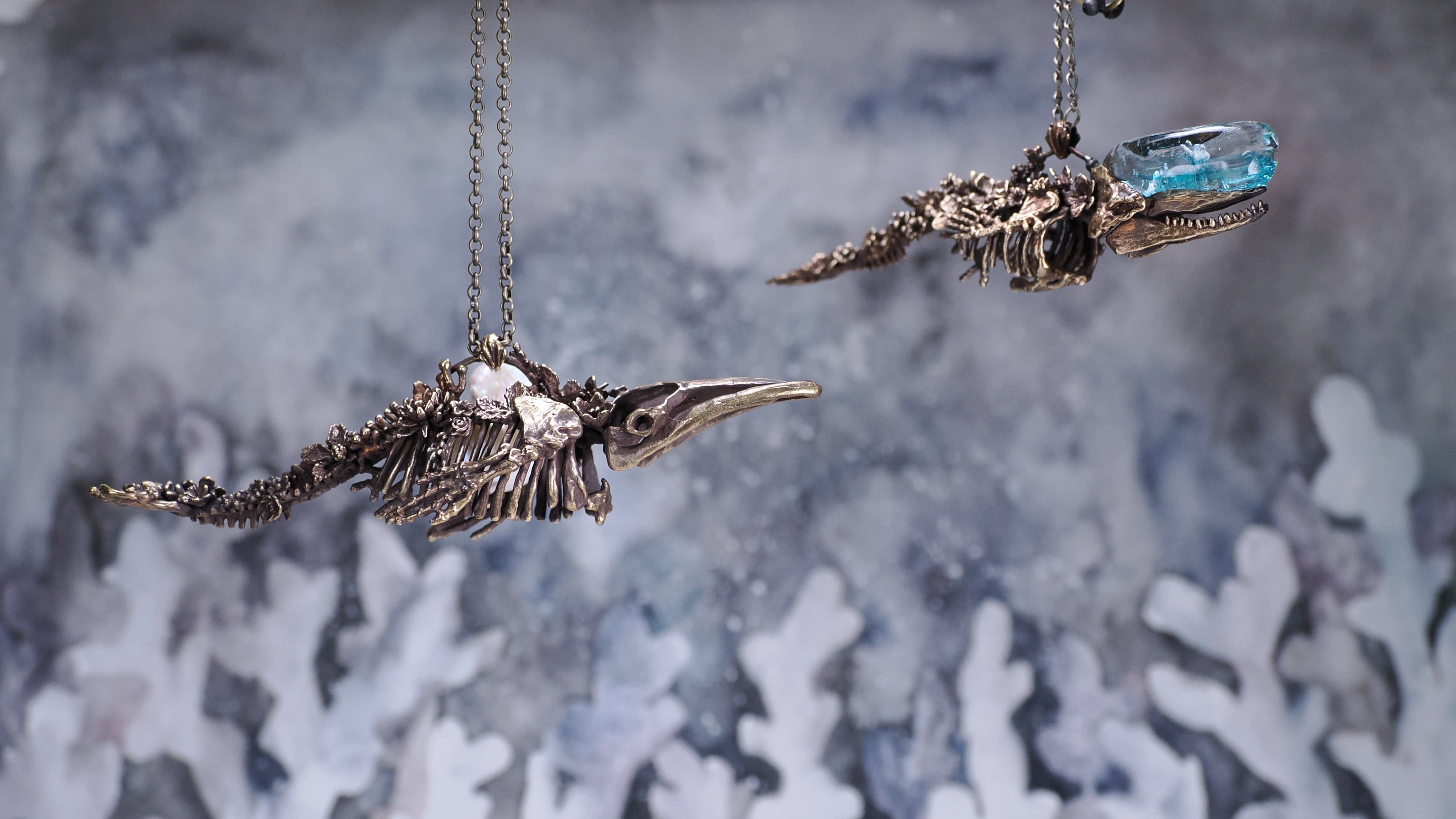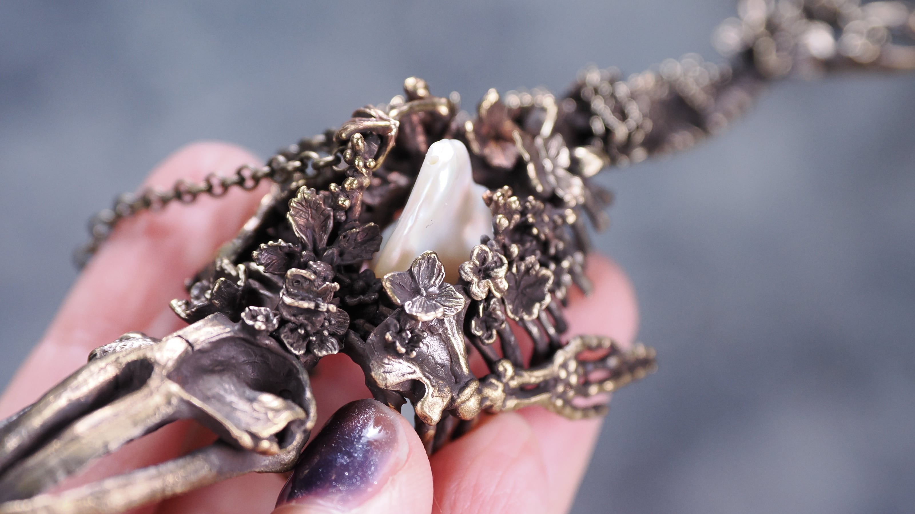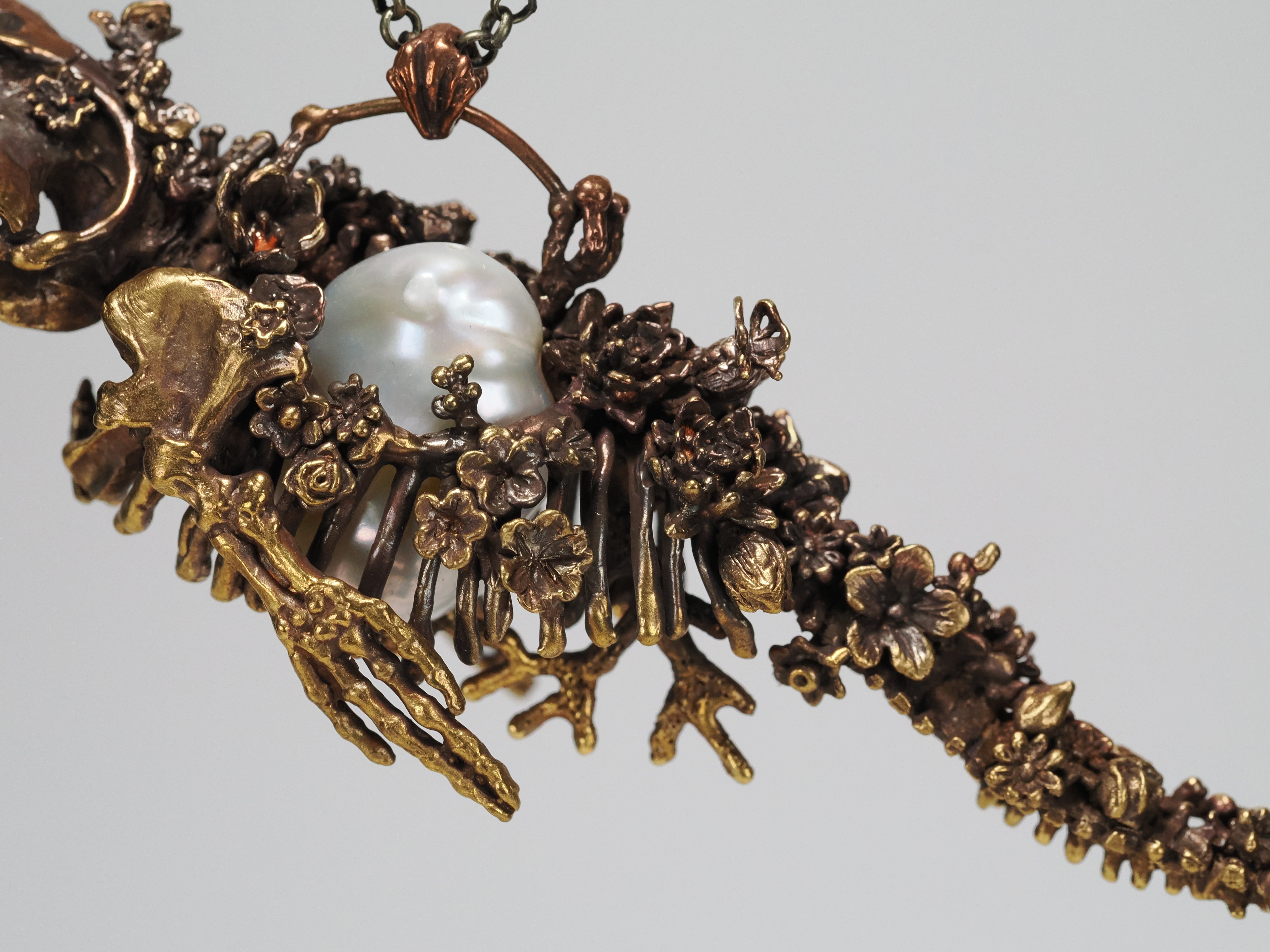 となり、骨になった鯨の心臓にパールが揺らめいているようなイメージで作りました。