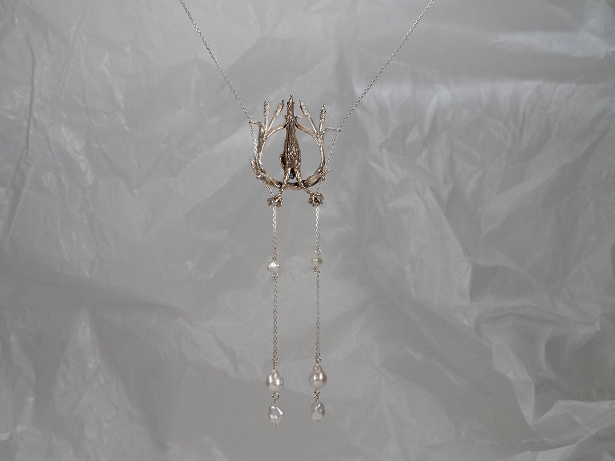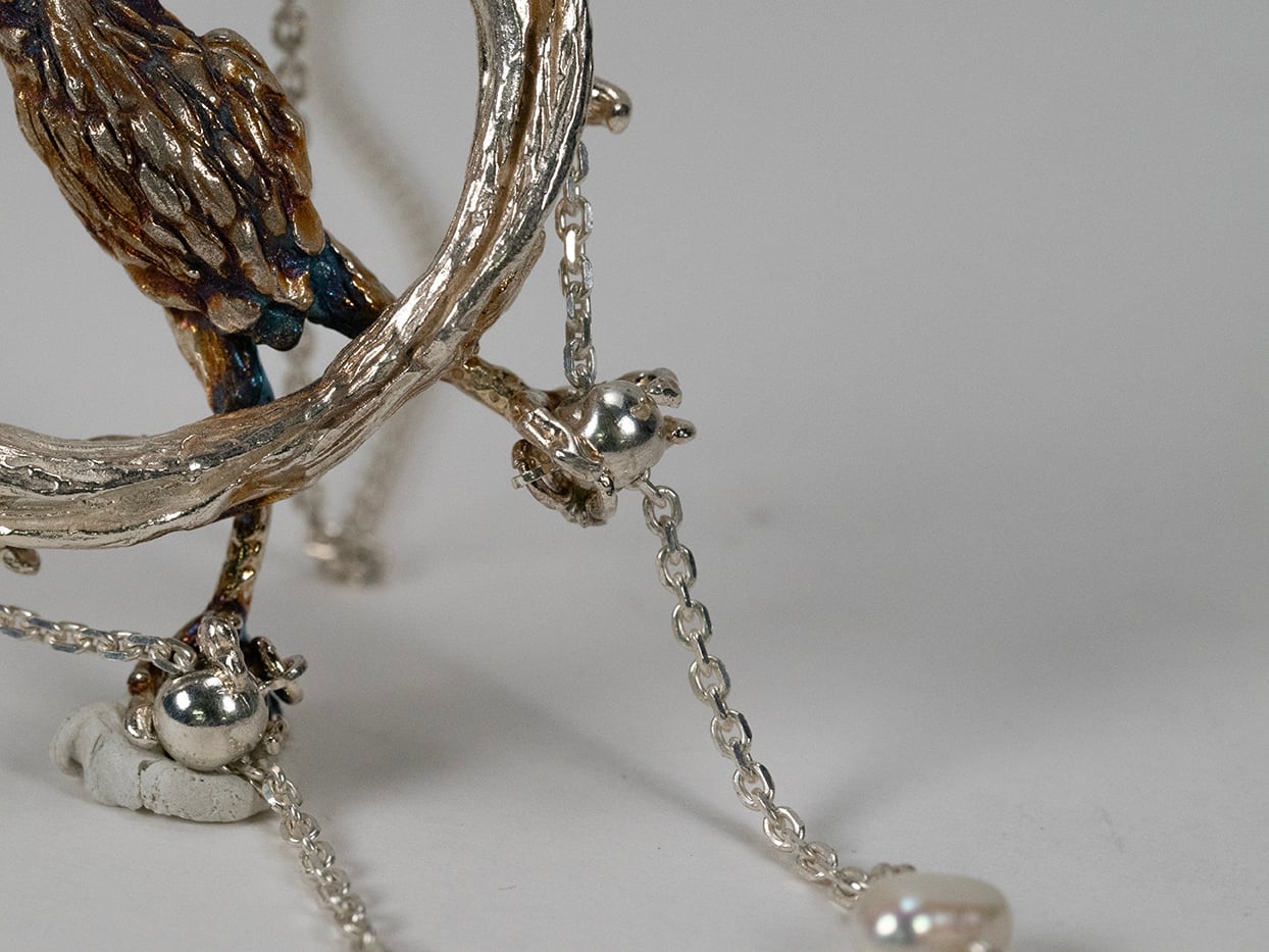 シリコンパーツでチェーンを掴んで好きな場所にヨシゴイを鎮座できます。